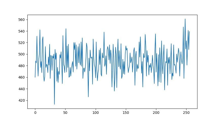 it’s not uniformly distributed integers. Distcheck fails with p = 0.030827 for 256 bins, which are plotted below.